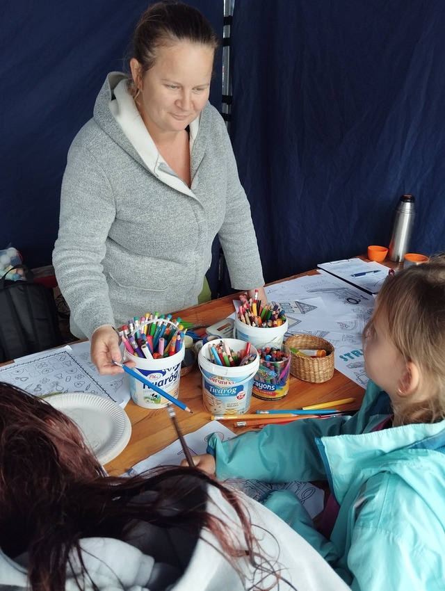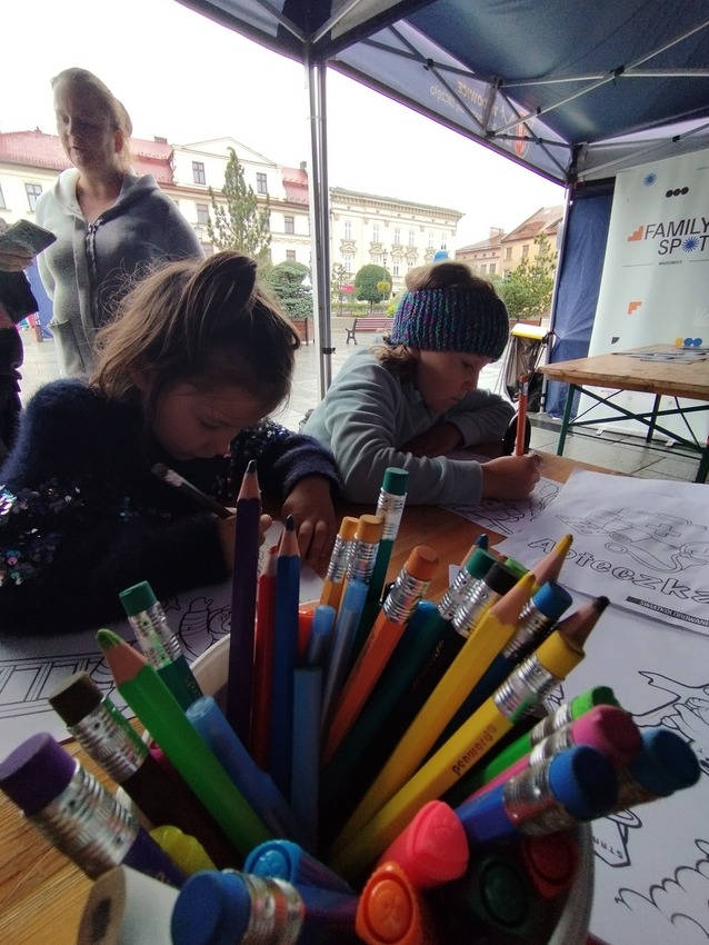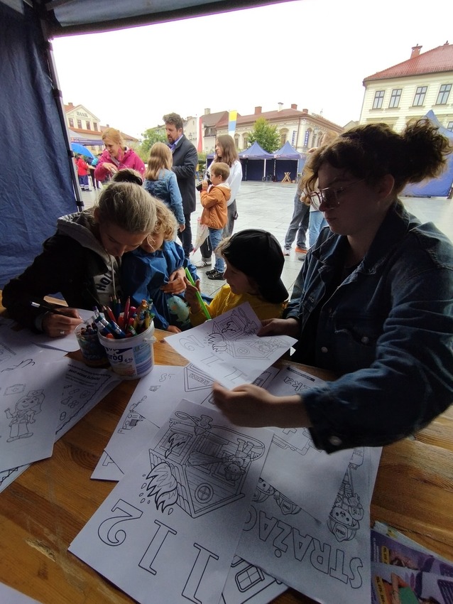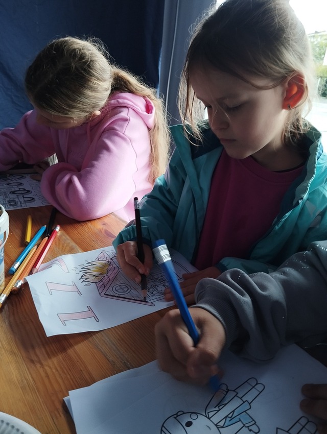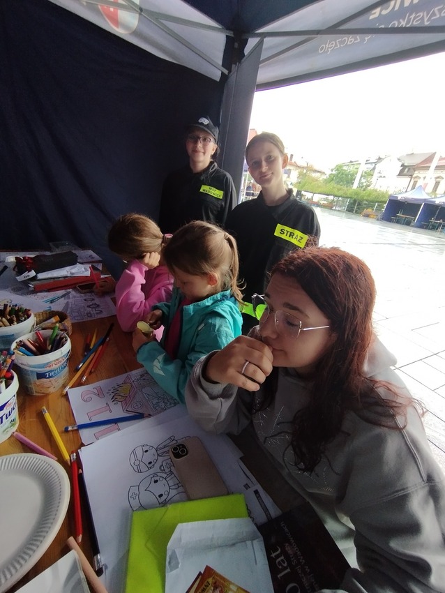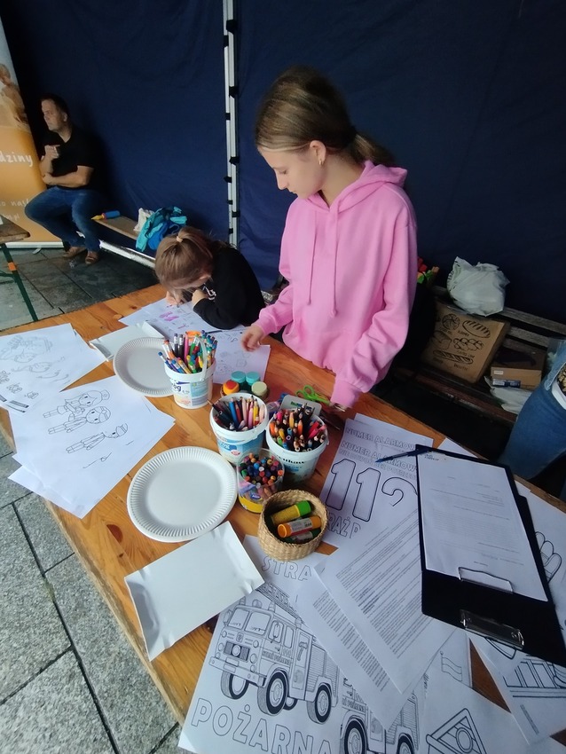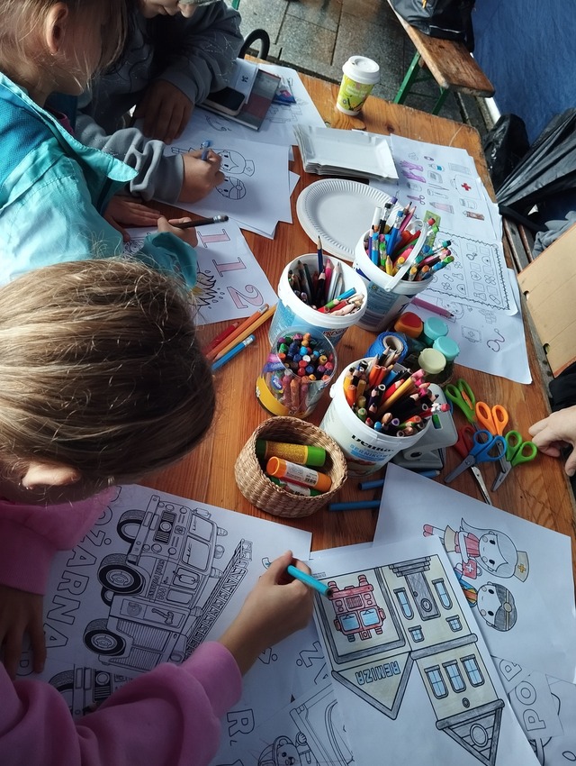 Choć pogoda nie była najlepsza, przeprowadziliśmy warsztaty plastyczne o tematyce Pierwszej Pomocy Przedmedycznej a także o tematyce strażackiej