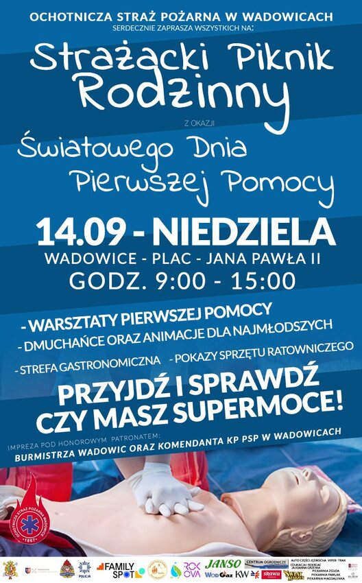 Kreatywne warsztaty dla rodzin jako wydarzenie towarzyszące podczas Strażacki Piknik Rodzinny - OSP Wadowice z okazji Światowego Dnia Pierwszej Pomocy (relacja)